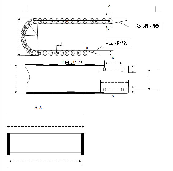 3、拖鏈的支撐板寬度為150mm至600mm,孔與孔之間的間隔量為5mm。
