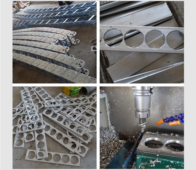 (3)單元鏈節由左右鏈板和上下蓋板組成,鋼制拖鏈每節都能打開,裝拆方便,不必穿線,打開蓋板后即可把電纜、油管、氣管、水管等放入鋼制拖鏈。