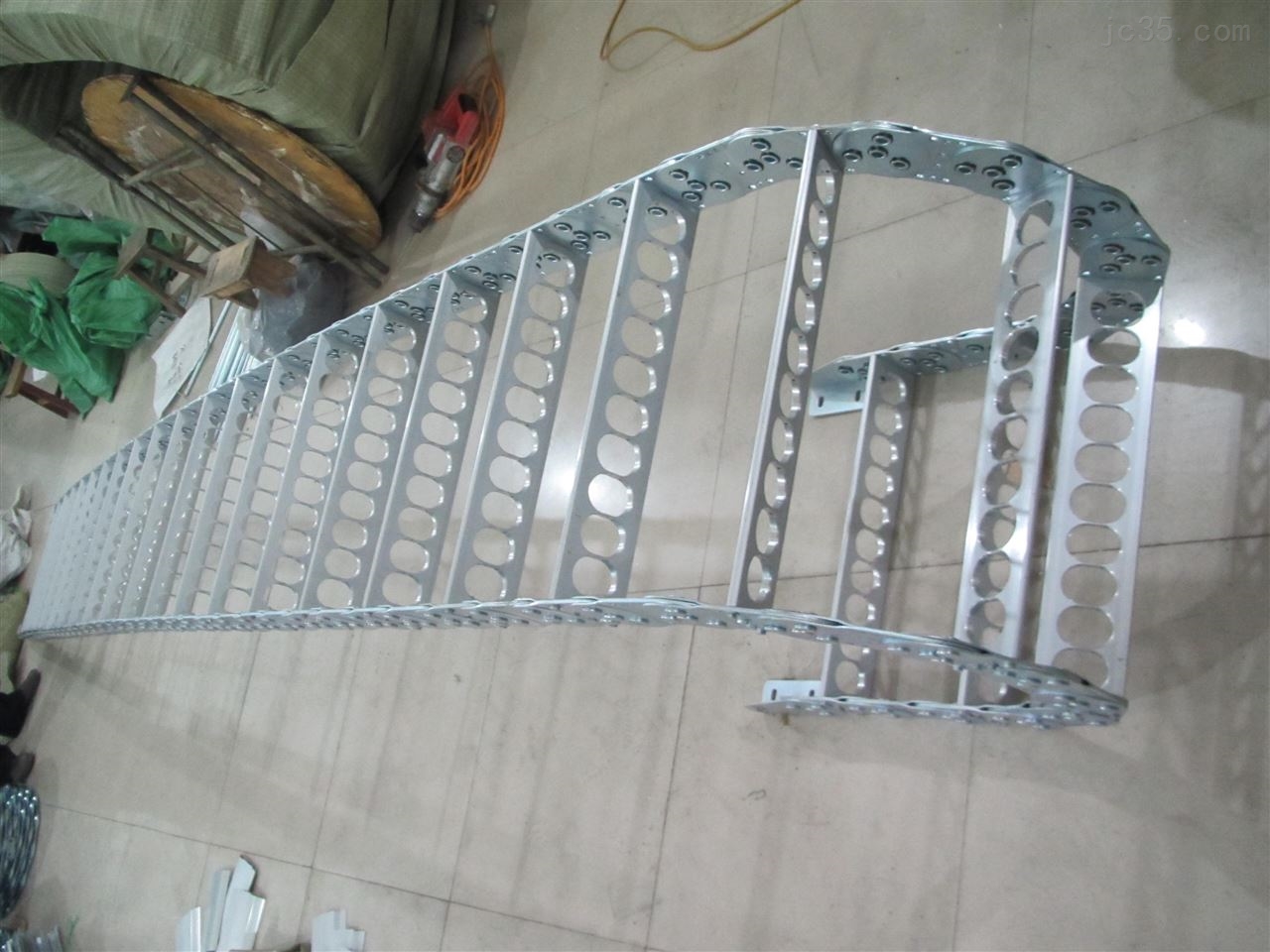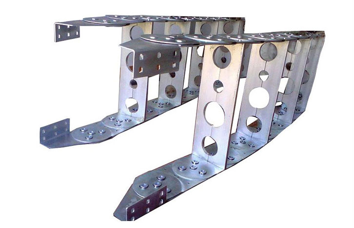 (1)鋼鋁拖鏈外形似坦克鏈,由眾多的單元鏈接組成,鏈接之間轉動自如。