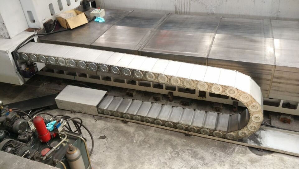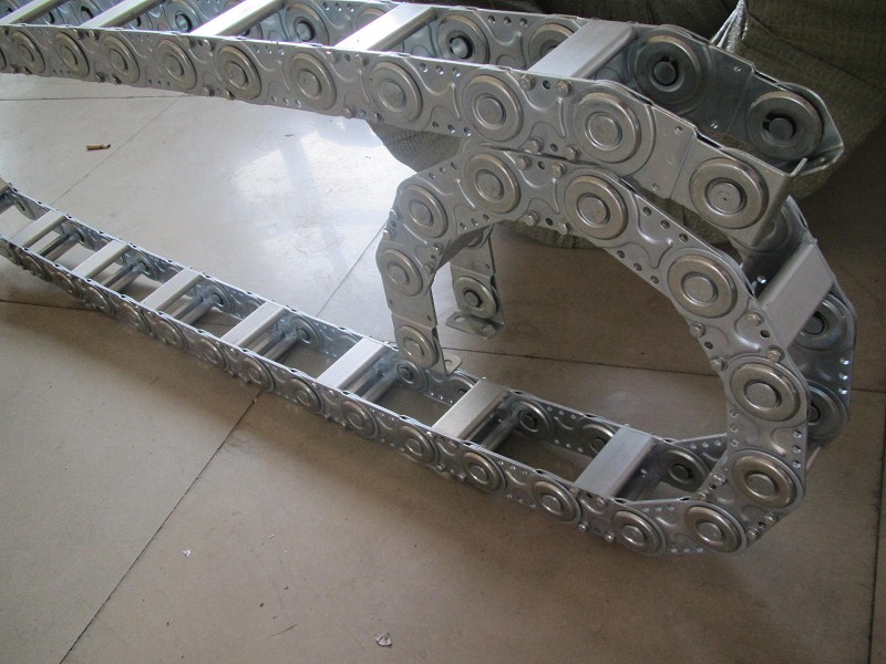(3)單元鏈節由左右鏈板和上下蓋板組成,鋼鋁拖鏈每節都能打開,裝拆方便,不必穿線,打開蓋板后即可把電纜、油管、氣管、水管等放入鋼制拖鏈。