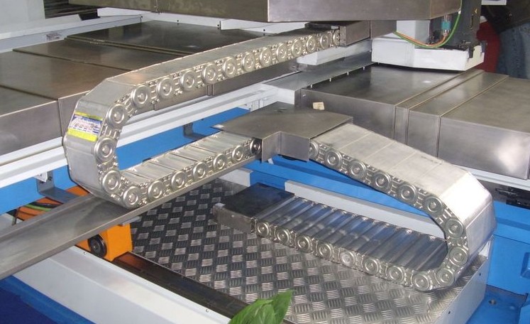 鋼制拖鏈適合于使用在往復(fù)運(yùn)動(dòng)的場合,能夠?qū)?nèi)置的電纜,油管,氣管,水管等起到牽引和保護(hù)的作用,廣泛應(yīng)用于數(shù)控機(jī)床,電子設(shè)備,石材機(jī)械,玻璃機(jī)械,門窗機(jī)械,注塑機(jī),機(jī)械手,超重運(yùn)輸設(shè)備,自動(dòng)化倉庫等。