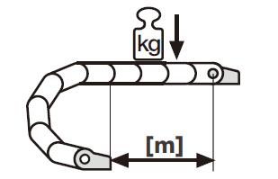 所選產品的前言部分找到圖表。在本章的后續部分,你可以找到樣本中所有系列產品的FLG與FLB值。通過這個圖表你可以找到對應拖鏈的承載及行程查到所選拖鏈的最大負載